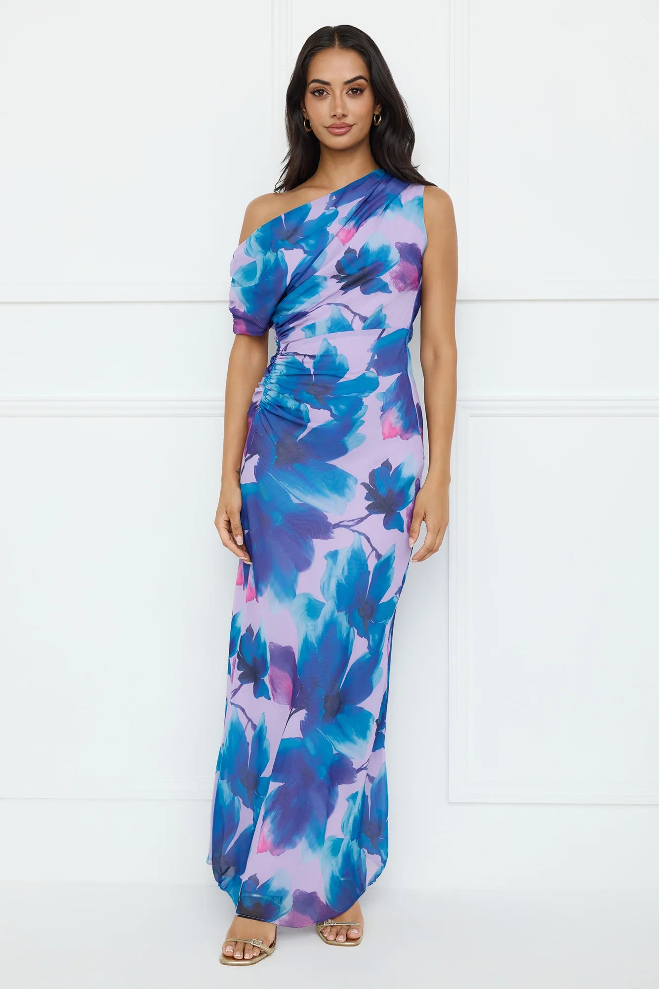 Make a statement in the Indigo Light Off Shoulder Maxi Dress. It features an off-the-shoulder design, a gathered detail to one side and a gorgeous print. Style with heels for all the likes.